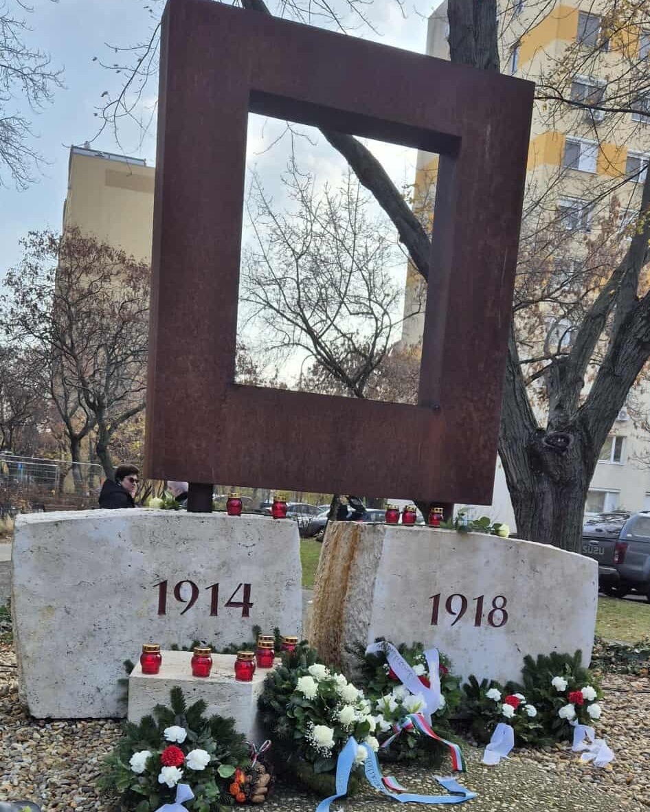 Az I. Világháborút, azaz a Nagy Háborút lezáró 1918. 11. hó 11-én 11 óra 11 perckor hatályba lépett tűzszünet 107. évfordulóján, a Harctéren Elesett Katonák Nemzetközi Emléknapján, a Nemzetközi Gyertyagyújtási Akció keretében koszorúzással és gyertyagyújtással emlékeztünk meg a XIII. kerületi Világháborús Emlékműnél az elesett katonákról és a polgári áldozatokról. A rendezvény a Felhívójellel kezdődött. A narrátor idén is Radó Gábor volt, aki a megjelentek köszöntése után levezényelte a programot.