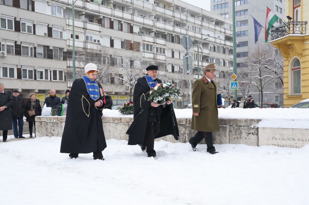 A megemlékezés virágait Szeged MJ. Város képviseletében Dr. Binszki József alpolgármester, Csongrád-Csanád Vármegyei Területvédelmi Bizottság képviseletében Csepregi Balázs alezredes, a MH vitéz Heim Géza 46. Területvédelmi Zászlóalj képviseletében Pontyik Pál őrnagy, a Történelmi Vitézrend Csongrád-Csanád Vármegye képviseletében vitéz Gimesi István és vitéz Ocskó Zsuzsanna, Magyar Tartalékosok Országos Szövetsége Csongrád-Csanád Vármegyei elnöke Vajda Zoltán, a Szegedi Bajtársi Klub nevében Gergely János nyugállományú ezredes, Nagy Zoltán nyugállományú pv. alezredes, Salamon Béla nyugállományú alezredes helyezték el.