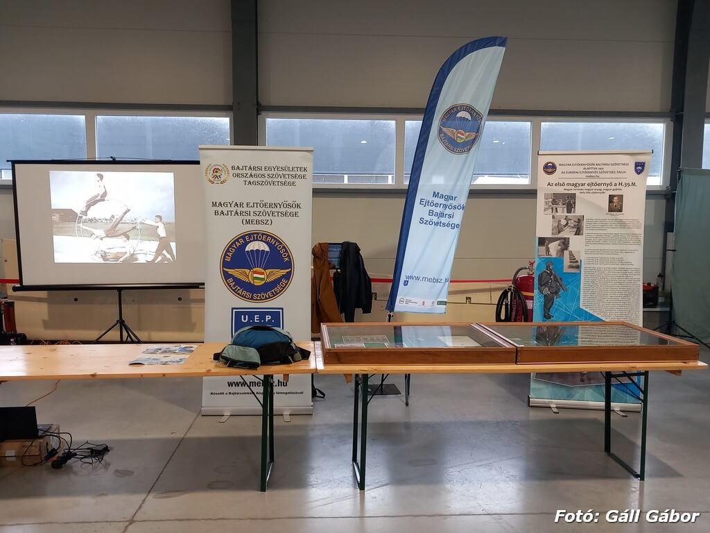 Az új hangárban az ejtőernyőzés múltját a MEBSZ (Gáll Gábor) tárlóiban elhelyezett relikviák és a Hehs Ákos munkásságát bemutató roll-up idézték. Sikerült Vargha Tamás HM államtitkár, Székesfehérvár országgyűlési képviselője és a város polgármesterének is megmutatni a MEBSZ standját, különösen a Székesfehérvárhoz kötődő Hehs életművet. Szintén a hangárban volt kipróbálható a Sokol cég ejtőernyős szimulátora, amely bizton állíthatóan a nap szenzációja volt. A hangár előtt pedig az Aeroking Ejtőernyős Klubnál sátrában Papp-Horváth Anna és Horváth Pál segítségével a célbaugrást eredményességét lehetett kipróbálni.