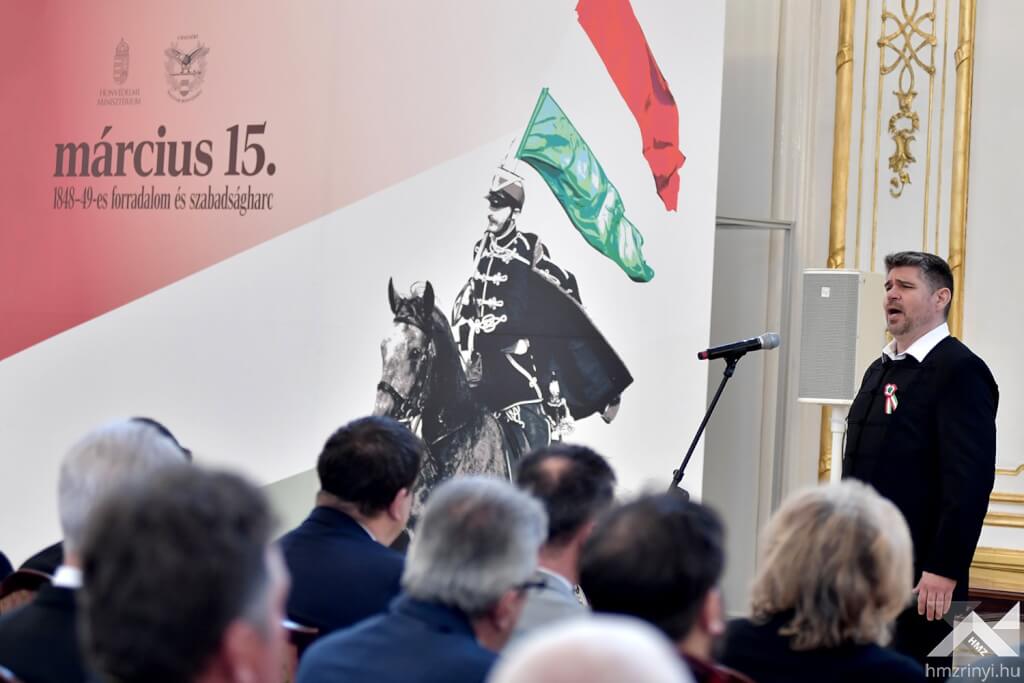 „Emlékezzünk ma tisztelettel azokra, akik 1848-49-ben hittek hazánk jövőjében, és tegyük hozzá a magunk részét ehhez a jövőhöz” – szólította fel a közönséget dr. Kutnyánszky Zsolt, a Honvédelmi Minisztérium haderőfejlesztésért és védelempolitikáért felelős államtitkára, nemzeti ünnepünk, március 15-e alkalmából civil személyeknek rendezett központi ünnepségen, a Stefánia Palotában.