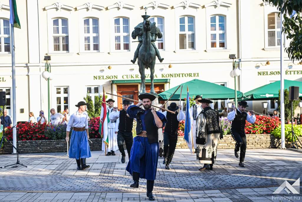 A díjátadó után az ünnepség a Hősök terén folytatódott, ahova bevonultak a gróf Nádasdy Ferenc Huszárosztály és a Városi Bandérium lovasai. Nagy István, a Bocskai Múzeum igazgatója elmesélte a város történetét, majd néptáncosok adtak ízelítőt a térség folklórörökségéből. A Nádasdy Huszárosztály parancsnoka koszorút helyezett el Bocskai István lovasszobránál. „Megtisztelő, hogy részt vehetünk ezen az ünnepségen – mondta el Varga István ezredes, aki maga is Hajdúszoboszlón él. – Ez a város sok jó lovas katonát adott Magyarországnak, büszkék vagyunk arra, hogy a nyomukban járhatunk.”