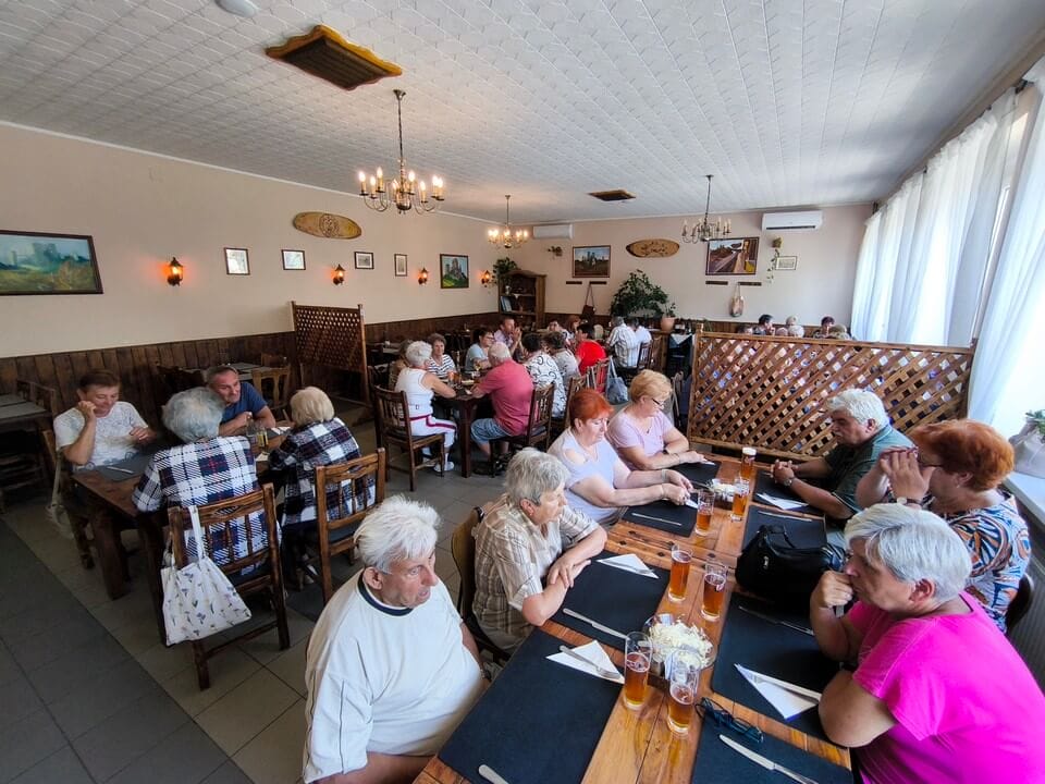 A meredek kaptatók leküzdése után a megfáradt vándorok a késő délutáni órákban fogyasztották el ebédjüket és hideg habzó söreiket a Várvölgy étterem szép falai között.
