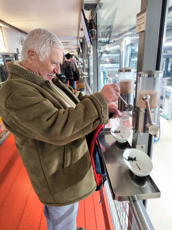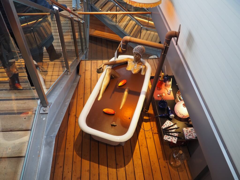 Eszméletlen kreatív minden, amit itt kitaláltak, egyik ámulatból estünk a másikba, ahogy robotkarok adagolják az alapanyagokat, kis libegők szállítják a csokoládét a Mennyország néven emlegetett csokibüfében vagy épp futószalagon jönnek a különféle ízesítésű csokoládék. És akkor még nem is beszéltünk a praliné-hullámvasútról vagy a Mennyek lépcsőjéről, ahol minden második lépcsőfokra jut egy kóstoló, sem a drazsésorról, ahol már tényleg nem lehet betelni a fantasztikus ízekkel.
