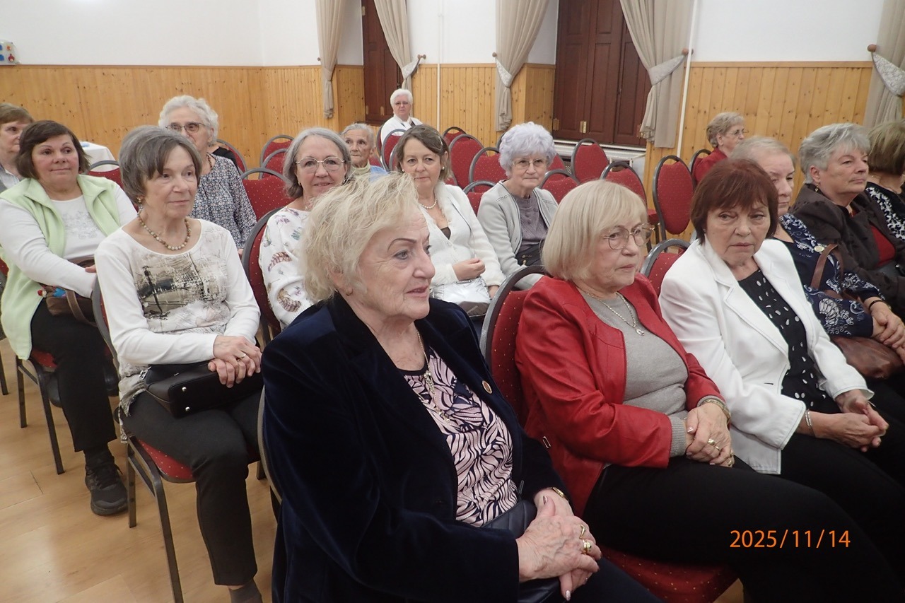 Vajda Ilona elnökhelyettes köszöntő beszédében felhívta a figyelmet arra, hogy milyen fontos az ember testi-lelki egészségének fenntartása, és ez az idős korra főként érvényes. Beszélt a zene, és a közösségi élmények erejéről, amely talán egy kis időre feloldhatja a magány és a fájdalmak érzését.