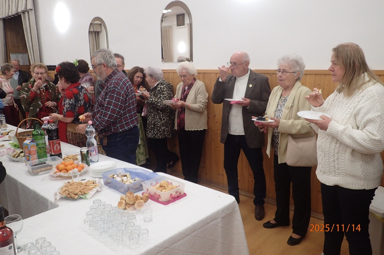 A kellemes hangulatú ünnepség a tagság hölgy tagjai által készített sütemények, szendvicsek mellett baráti beszélgetéssel zárult.