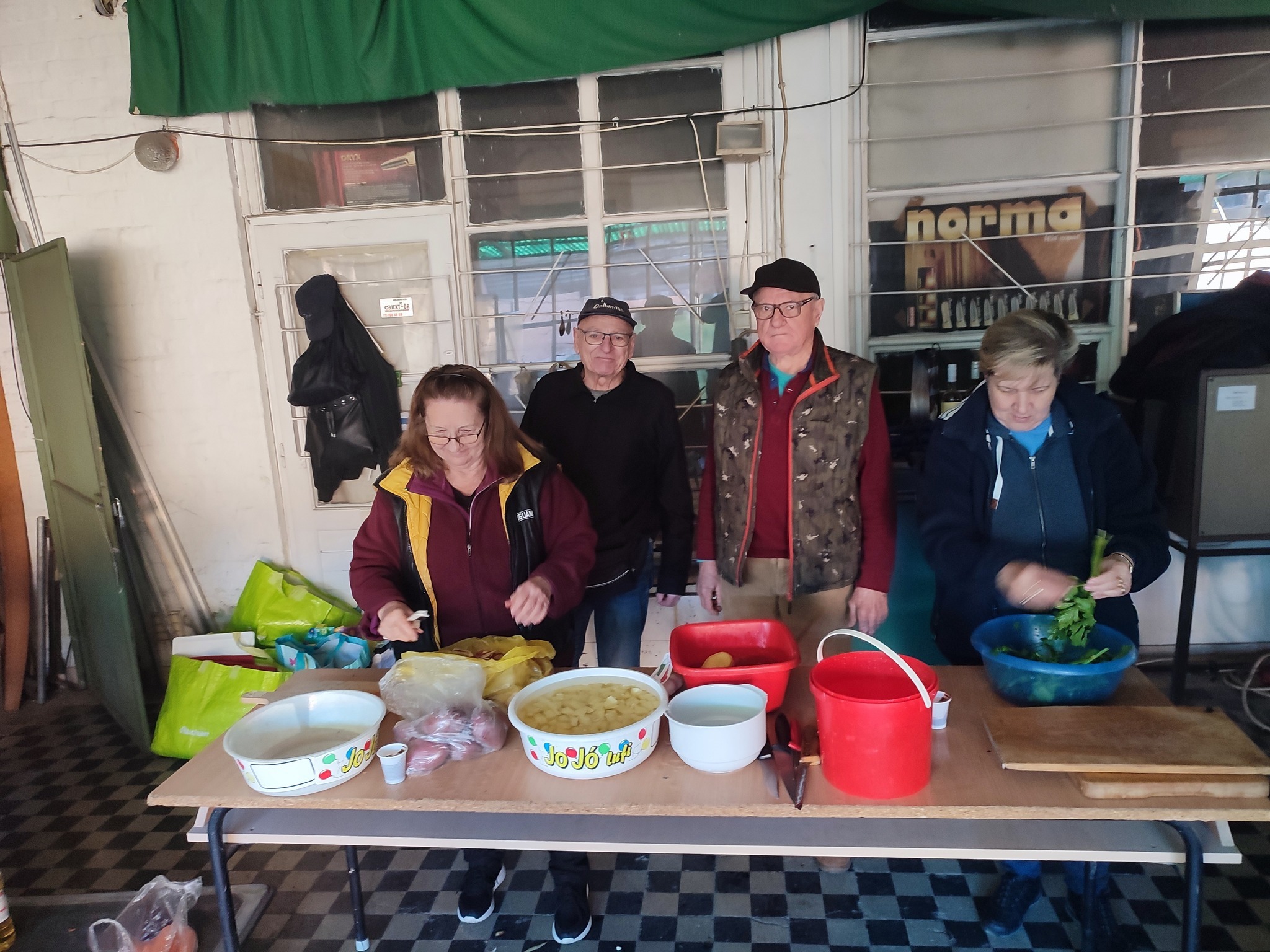A lövészetet előkészítő csoport már reggel 08.00-tól serényen ténykedett a lőtéren, mivel a vezetőség a lövészetet követően a tagságot finom ebéddel, gulyáslevessel tervezte megvendégelni. A serény kezek húst daraboltak, hagymát, zöldséget tisztítottak és csipetkét készítettek.