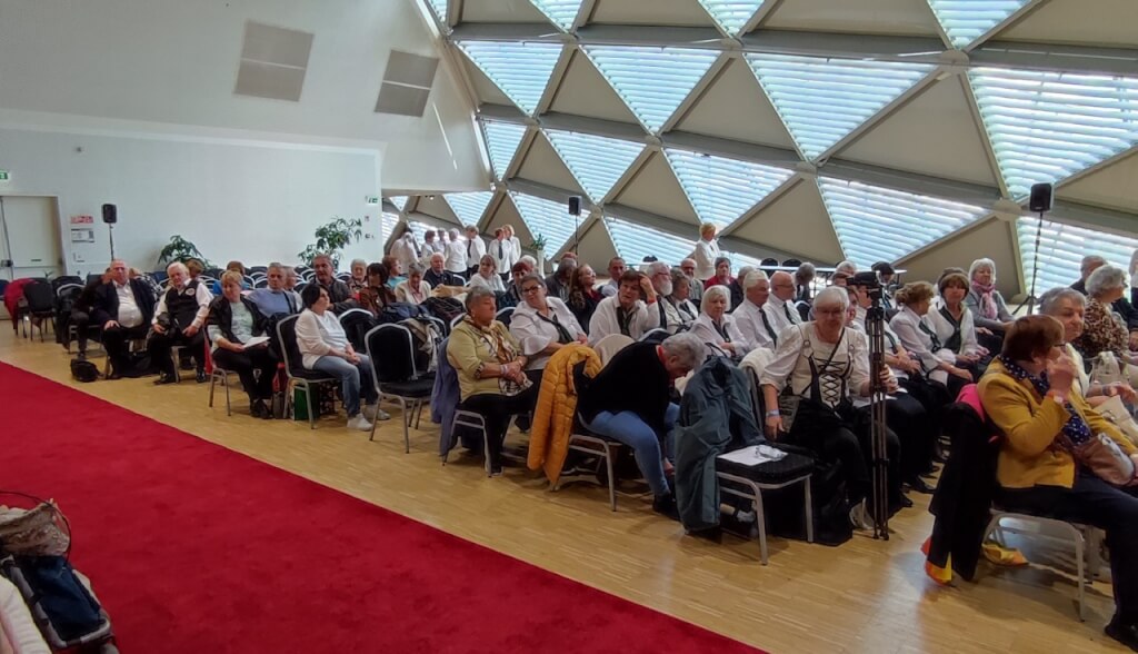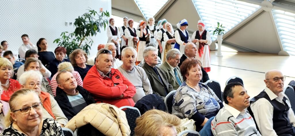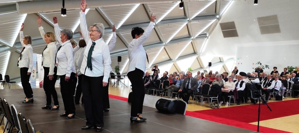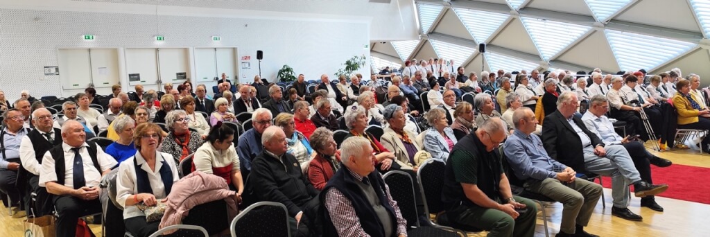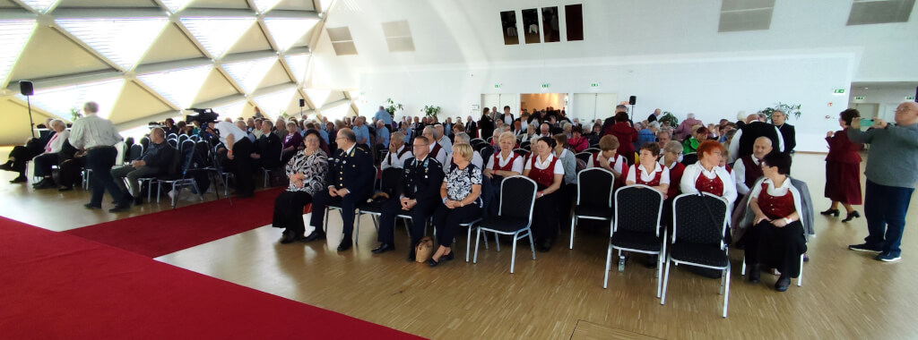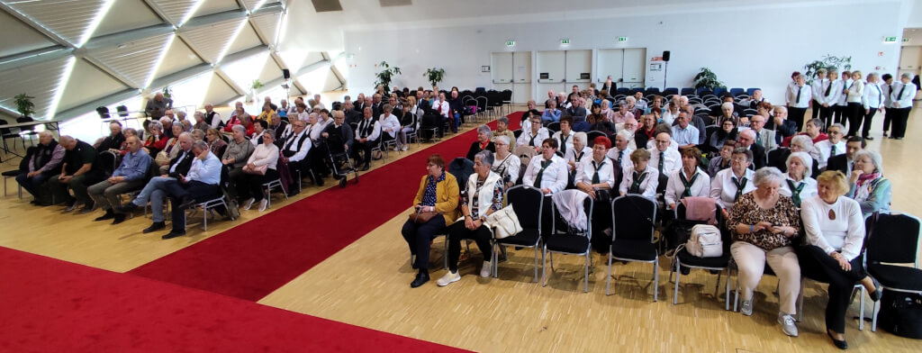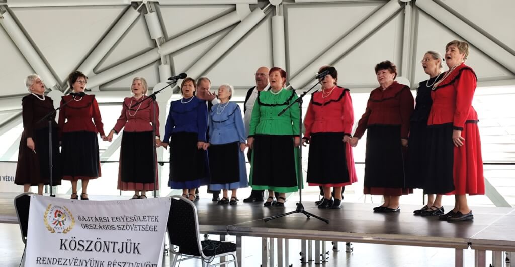 Közben megtelt a közel 300 fő befogadására képes Zrínyi Terem és a fellépési rend szerint megkezdődött a bemutató. Először a Fegyveres Erők és Testületek Egri Dobó Nyugdíjas Klubjának Kékibolya Honvéd Népdalkör előadásával, majd Pozsik Joachimné és Szarvas Attila népdallal szereplése, Tápiószecsőről Patornai Lászlóné versmondása, a veszprémi énekegyüttes bemutatója zárta HOKOSZ-tól érkezők szereplését. A Fejér Megyei Honvéd Nyugállományúak Székesfehérvári Klubja Nőszirom Vegyeskara s Nagy Bálint egyéni fellépése következett. Pápáról a Vidám Nagyik szereplése és éneklése zárta a délelőtti programot.