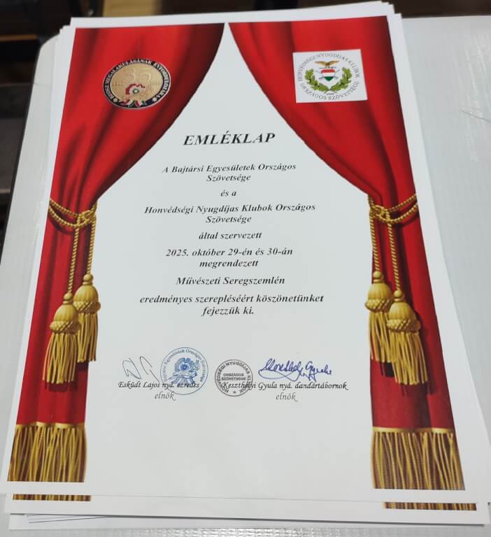 A Bajtársi Egyesületek Országos Szövetsége (BEOSZ) megalakulásának 35. és a Honvédségi Nyugdíjas Klubok Országos Szövetsége (HOKOSZ) létrejöttének 25. évfordulója alkalmából Művészeti Seregszemlét tartottak a két szervezet részéről jelentkező amatőr kulturális tevekénységet végző együttesek és egyéni szereplők részére 2025. október 29-én és 30-án a Bálna Honvédelmi Központban.