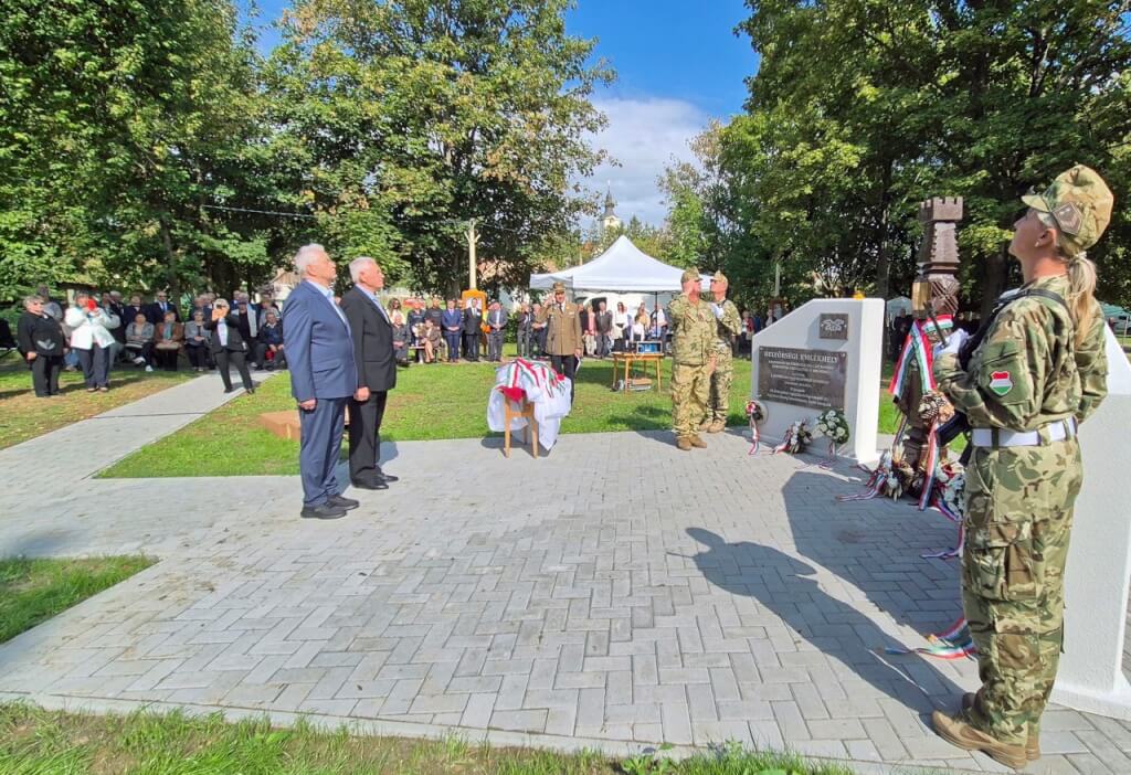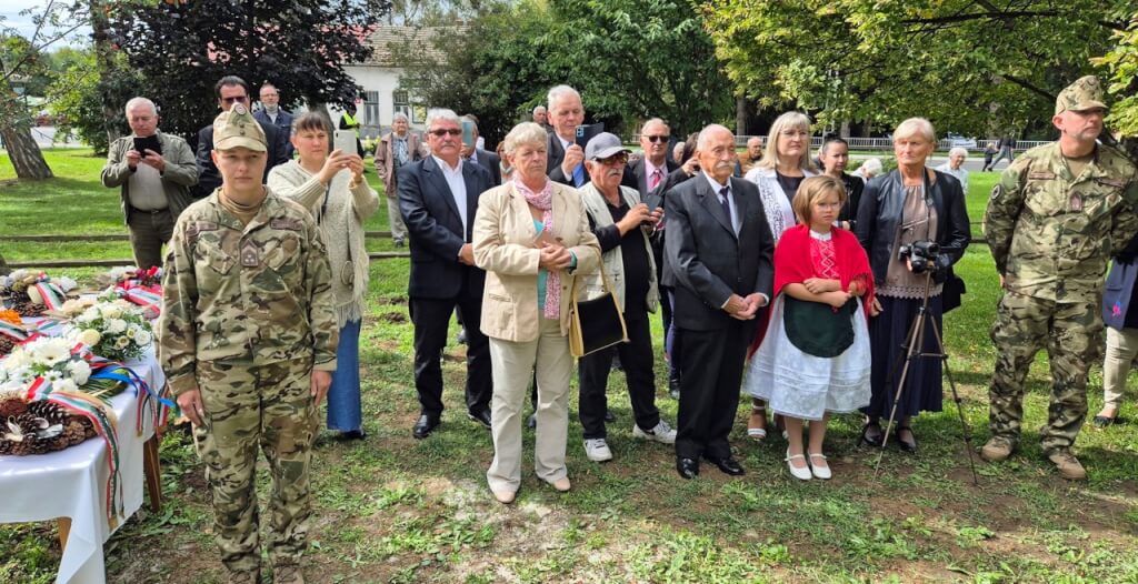 A nagyoroszi Légvédelmi Hagyományőrző Egyesület – amelynek Kozsik János nyugállományú ezredes barátunk az elnöke – 2023-ban határozta el, hogy a 75. évfordulóra széles összefogással létrehoz egy emlékhelyet, amit ünnepi állománygyűlés keretében avatnak fel. Az álom már valóság. Meghatódva hallgattuk a Himnuszt és néztük az emlékhely leleplezését, elérzékenyültünk az ünnepi beszédek hallatán, felemelő volt a táborilelkész áldása, majd a koszorúk elhelyezése, s végezetül a Szózat felcsendülése a Szolnok Légierő Zenekar jóvoltából.