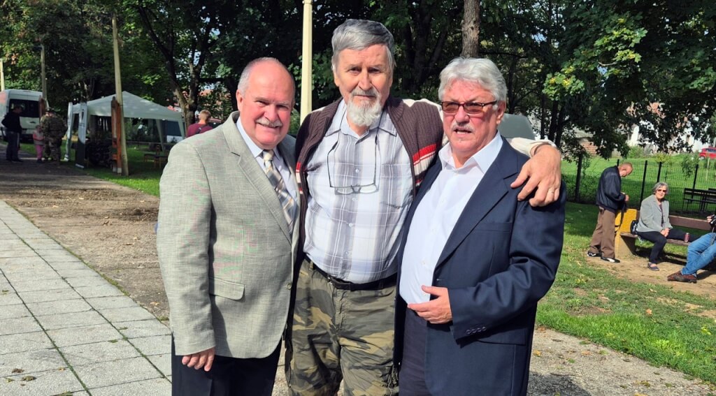 Hetvenöt év telt el a születés, huszonegy év a felszámolás óta, és itt fényképezkedünk a most felavatott, helyőrségi emlékhelynél. Négyen vagyunk. Pálfi „Öcsi” József, Kozsik János – szomorú kimondani, de az alakulat utolsó parancsnoka -, Kasza Sándor és jómagam. Egy ezredes, két alezredes és egy őrnagy. Civilben.