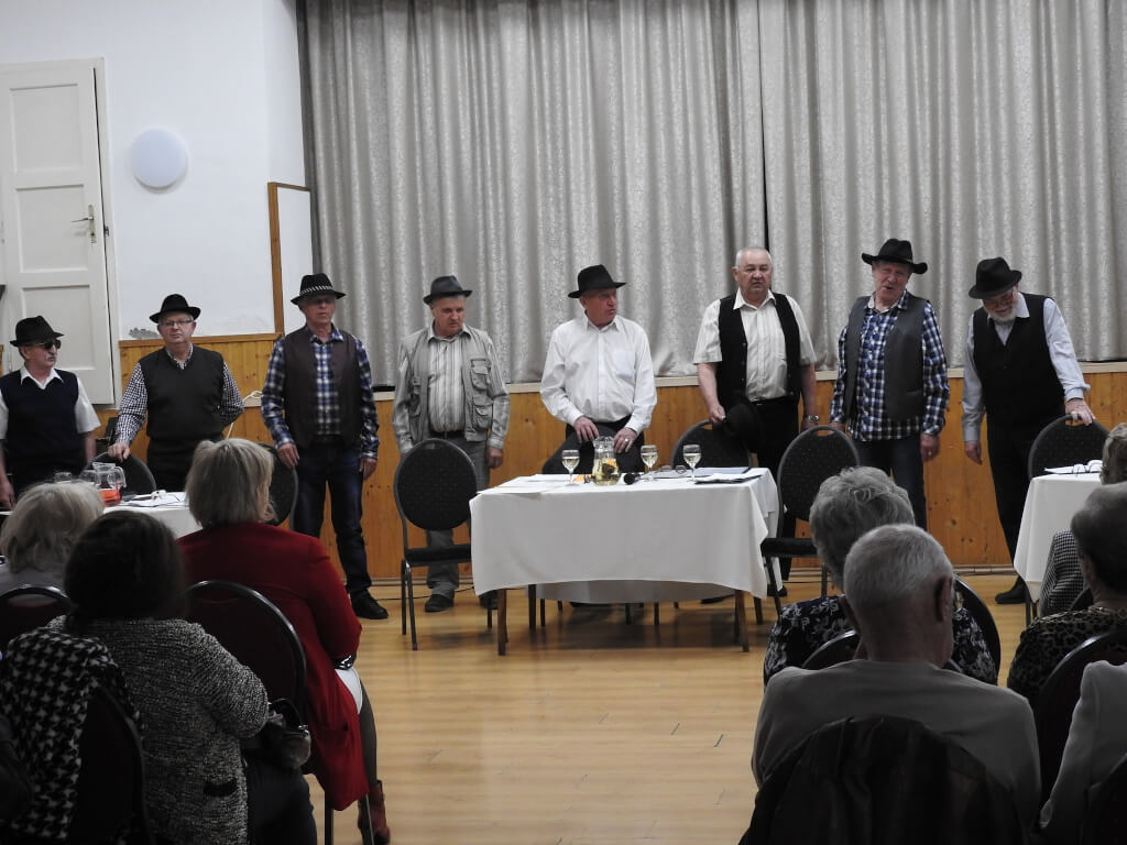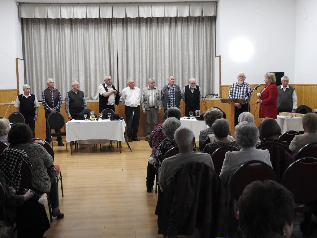 Az egyesület „bátor” férfi tagjai kilencen, műsorral kedveskedtek a hölgyeknek.