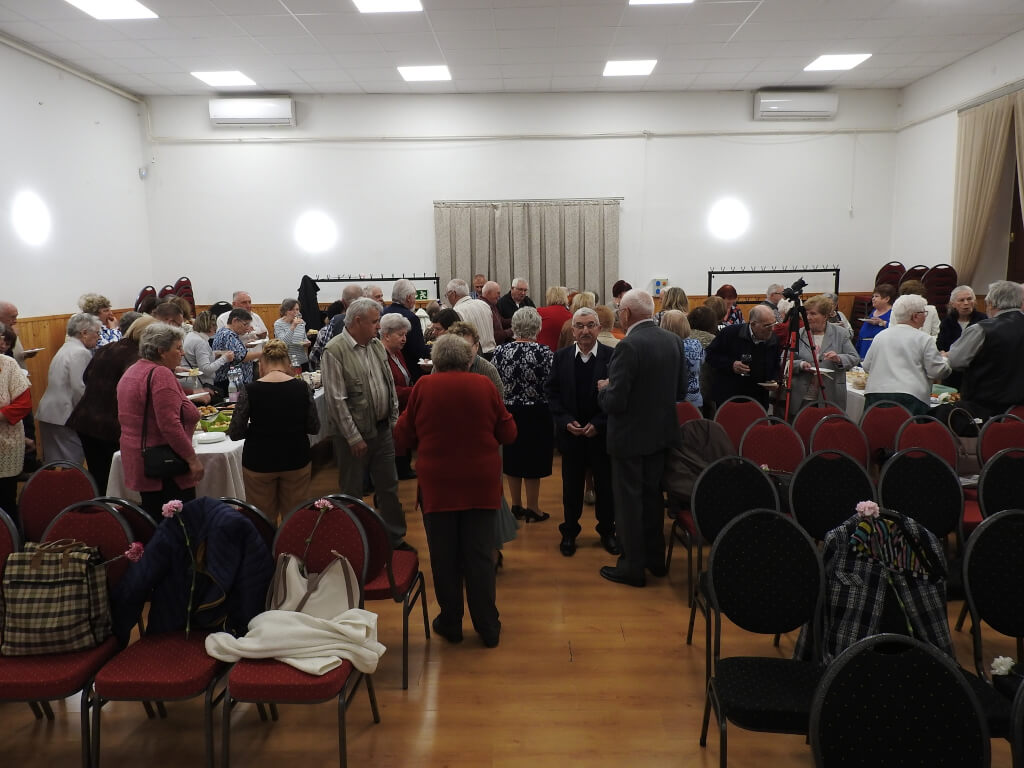A szegfűk átadását követően Romvári Frigyes elnök egy kis svédasztalos falatozásra invitálta a jelenlévőket, amelyet az ünnepelt hölgyek varázsoltak az asztalokra.