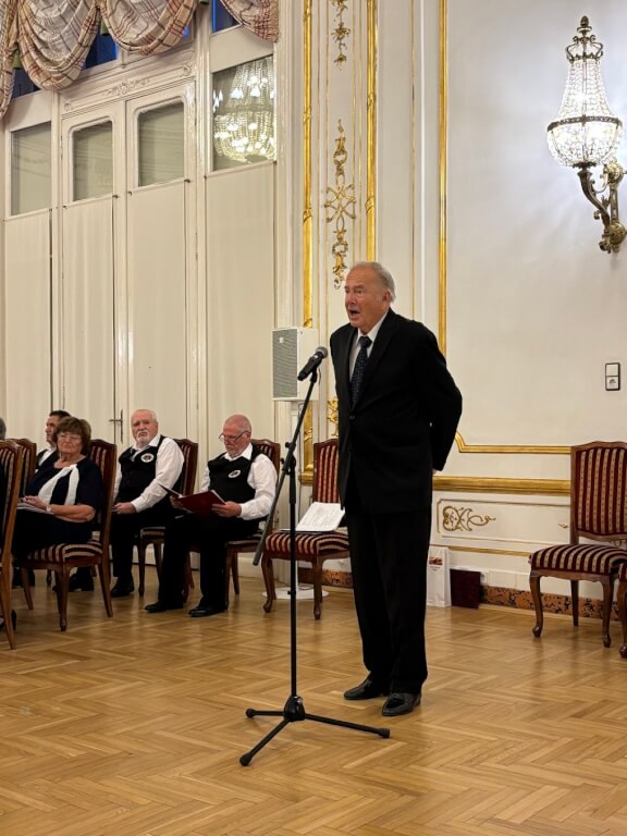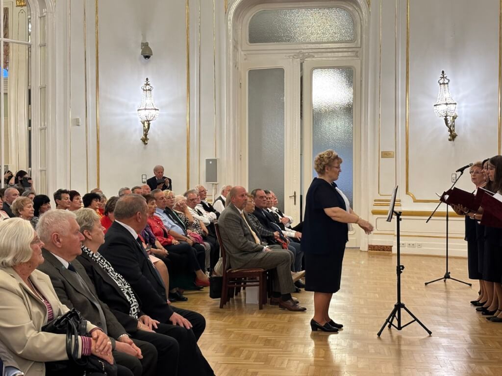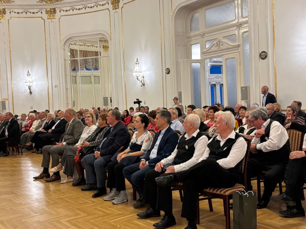 Már valóban csak az ízletes vacsora következhetett a földszinti elegáns díszteremben, amelyet megelőzött Esküdt Lajos, a BEOSZ elnökének pohárköszöntője és a kórusoknak átnyújtott elismerő oklevelek és ajándékok. Előzékeny kiszolgálásban részesültünk a Honvéd Kulturális Központ dolgozói által, amelyet ezúton is köszönünk. Szép környezetben, kitűnő étkek és italok fogyasztása után, jó társaságban könnyen elmúlt az idő. Még egyszer hálásan köszönjük mindenkinek, akit illet. Reméljük, 2026 őszén is találkozunk!