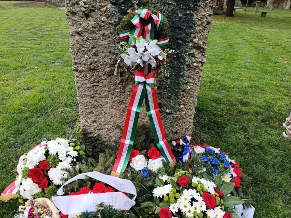 Az ünnepi beszéd után koszorúzás következett. Szarka János elnök, Szaniszló András, alelnök és Huszár Zoltán titkár helyezték el az emlékezés koszorúját.